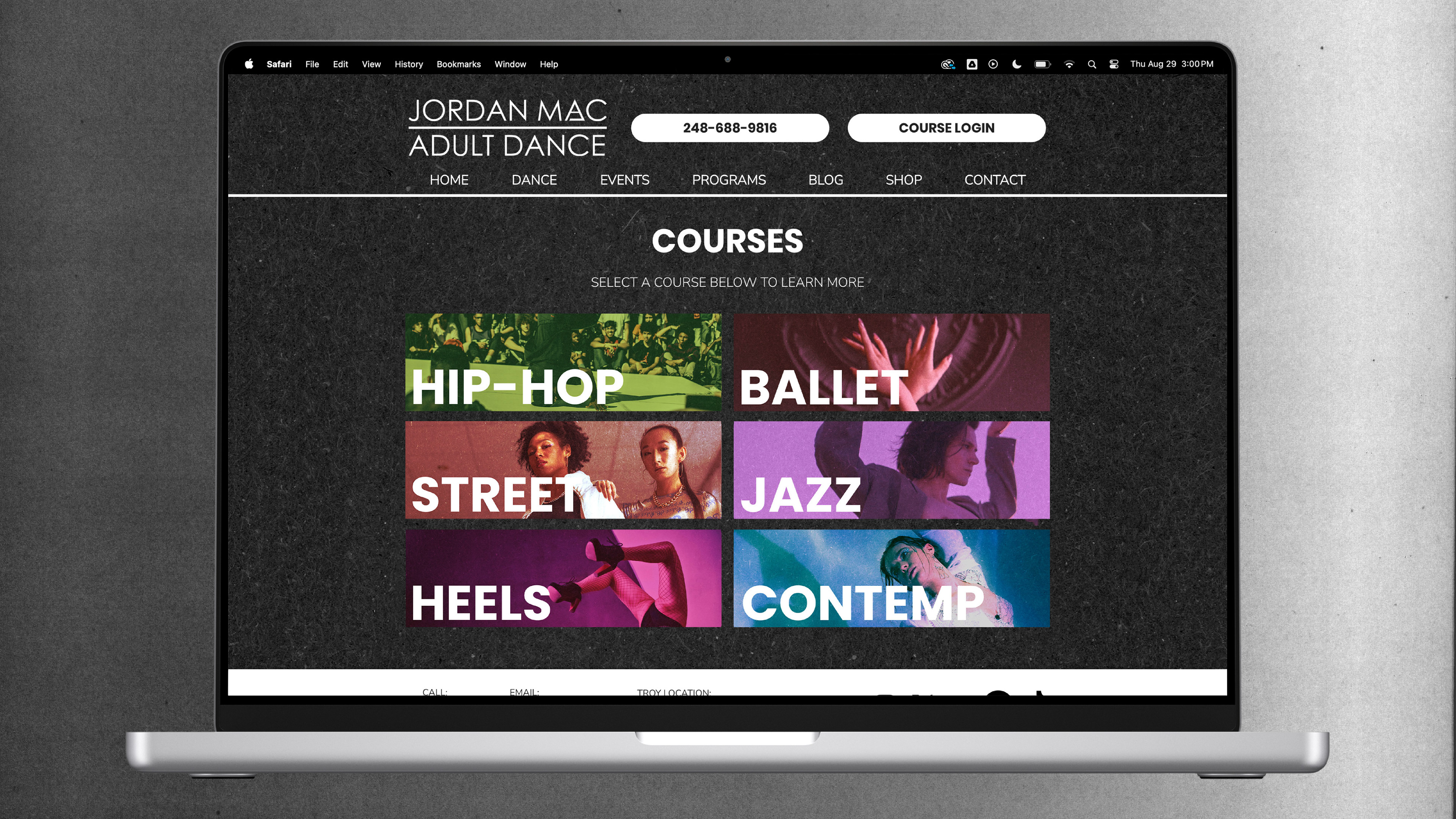Jordan Mac Adult Dance is an adult-focused dance studio designed to make dance accessible, welcoming, and engaging at any skill level. During my time working with the team, I led a rebrand and optimized website flow across key pages to create a clearer, more cohesive digital experience.